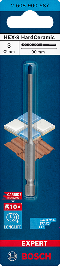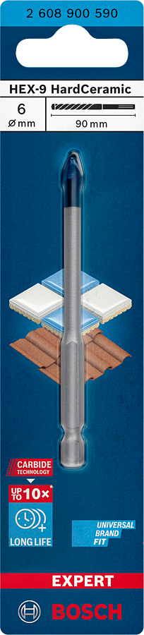 Burghiul Bosch EXPERT HardCeramic HEX-9 este proiectat pentru găurirea în materiale ceramice și poate găuri în plăci ceramice dure fără lubrifiant sau răcire.