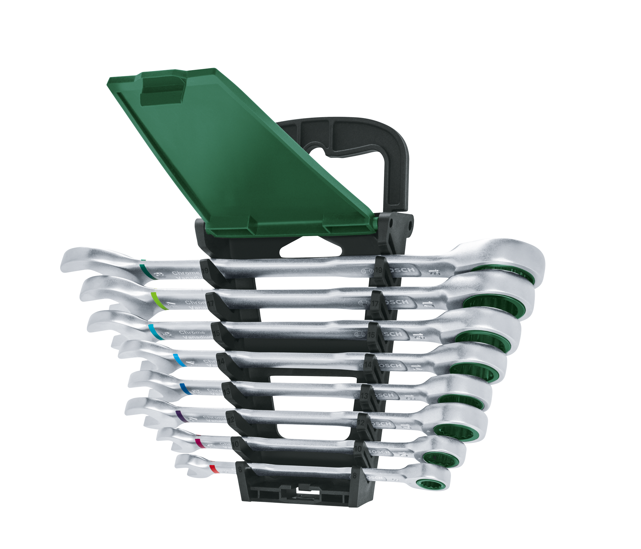 Setul de 8 chei cu clichet combinate Bosch este scula multifuncţională indispensabilă pentru numeroase lucrări de reparaţii şi întreţinere casnice. Fiecare sculă este o combinaţie de calitate superioară de chei cu clichet cu capăt deschis şi inelar pentru toate tipurile de lucrări şi pentru lucrul în spaţii mici. Piesele sculei sunt fabricate din oţel crom vanadiu durabil şi de înaltă calitate şi sunt acoperite cu nichel şi satin pentru o rezistenţă sporită la rugină. Fiecare cheie cu clichet are 72 de dinţi, un unghi de lucru de 5 grade şi atinge un cuplu ridicat, care este cu 20% peste standardul DIN. Pentru un confort maxim, cheile sunt codate cu ajutorul culorilor pentru o selecţie rapidă şi sunt ambalate într-o cutie de depozitare compactă cu mâner pliabil pentru portabilitate uşoară.