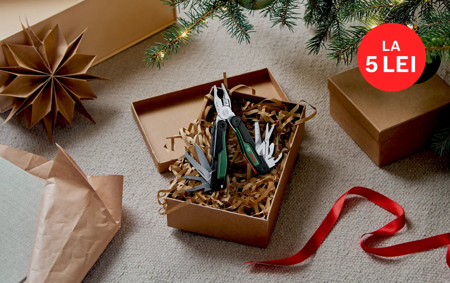 Unealta multifuncțională 16-în-1 Bosch este un ajutor universal indispensabil în atelier, în bucătărie sau în vacanțele în natură. Include mai multe șurubelnițe, clești, tăietor de cabluri, ferăstrău, cuțit, foarfece, pilă, spirală cu ochi, deschizător de sticle și conserve, scobitoare, pensetă și ruletă, fiind astfel ideală pentru bricolaj acasă, camping sau îngrijirea personală.