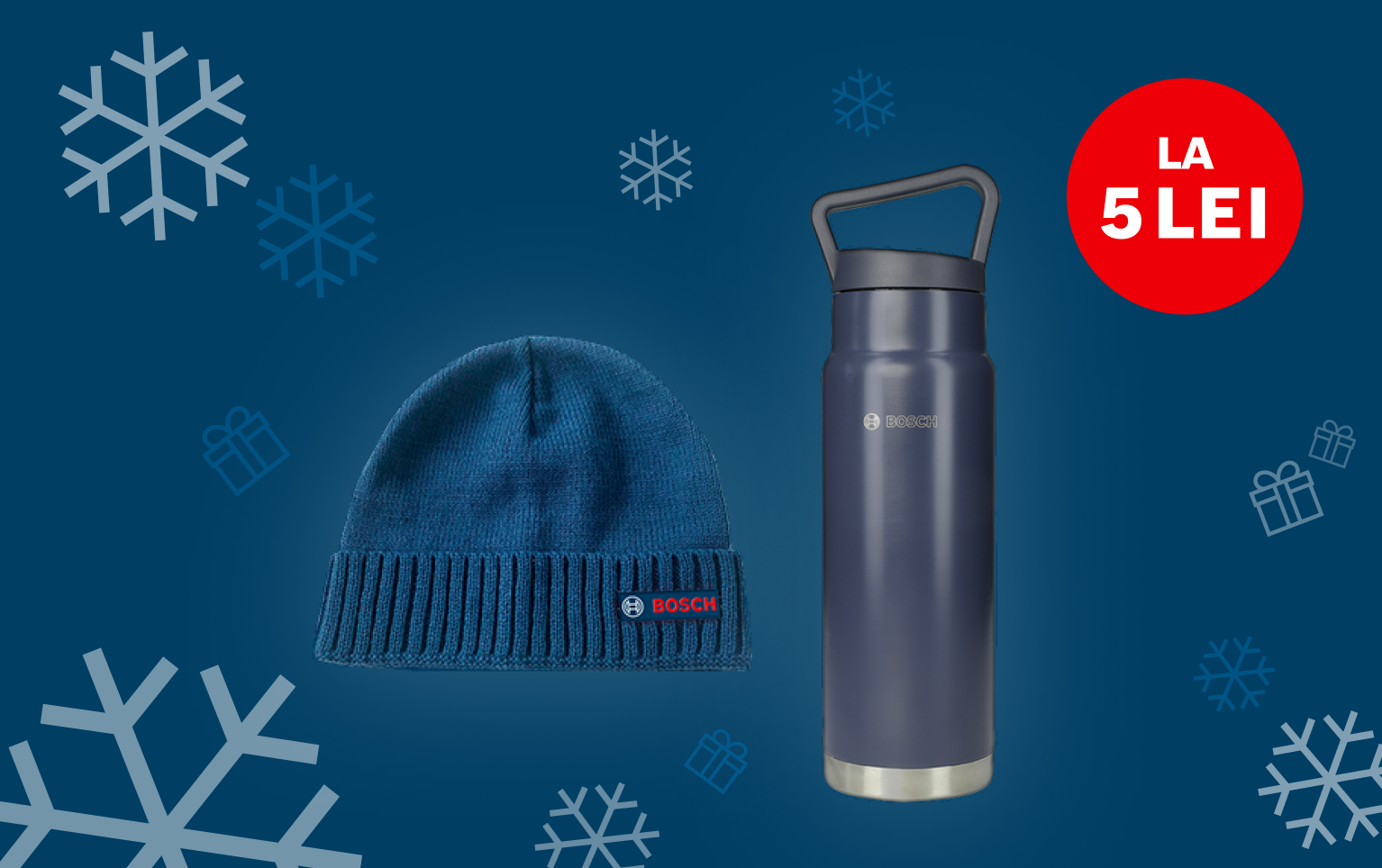 Căciulă sau sticlă Bosch la fiecare achiziție de unelte profesionale de peste 380 lei, respectiv 760 lei.