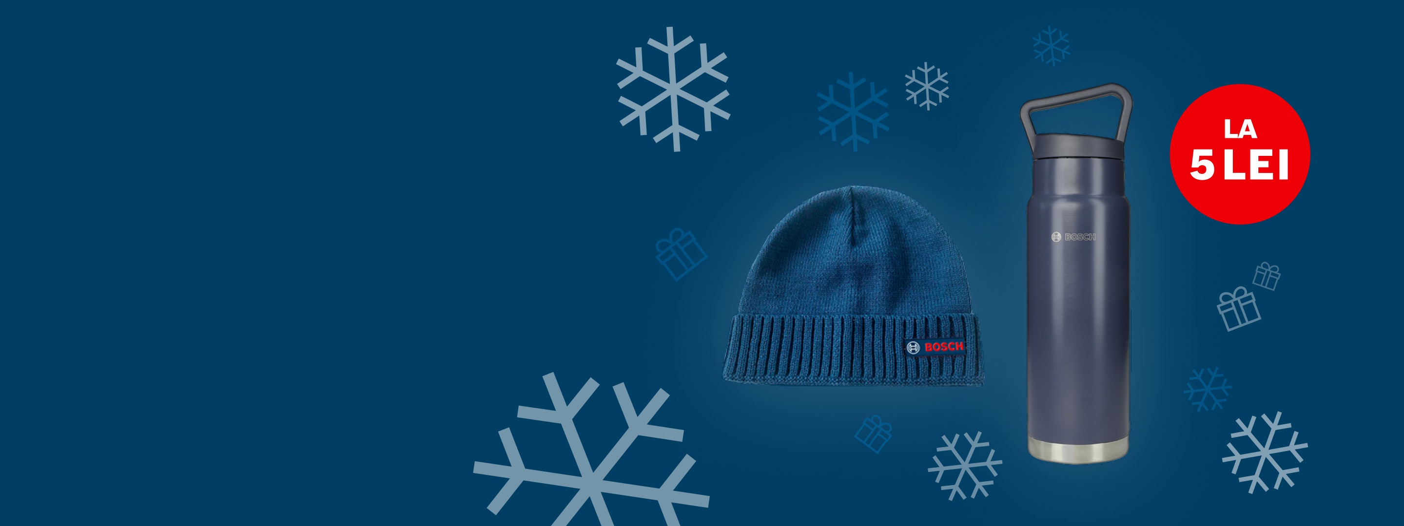 Dacă valoarea totală a produselor selectate depășește 380 lei, folosind codul „CACIULA”, vei putea adăuga în coș o căciulă Bosch [6.035.952.092] la 5 lei, sau la cumpărături de peste 760 lei, folosind codul „STICLA” vei putea adăuga în coș o sticlă Bosch [6.035.952.086] pentru aceeași sumă. Codurile se completează automat la casă la achiziționarea uneltelor Professional de peste 380 lei, respectiv 760 lei și după adăugarea Recompensei în coș. Codul nu poate fi folosit retroactiv și nu poate fi combinat cu alte promoții, reduceri sau vânzări angajaților. Promoția este valabilă până la epuizarea stocurilor.