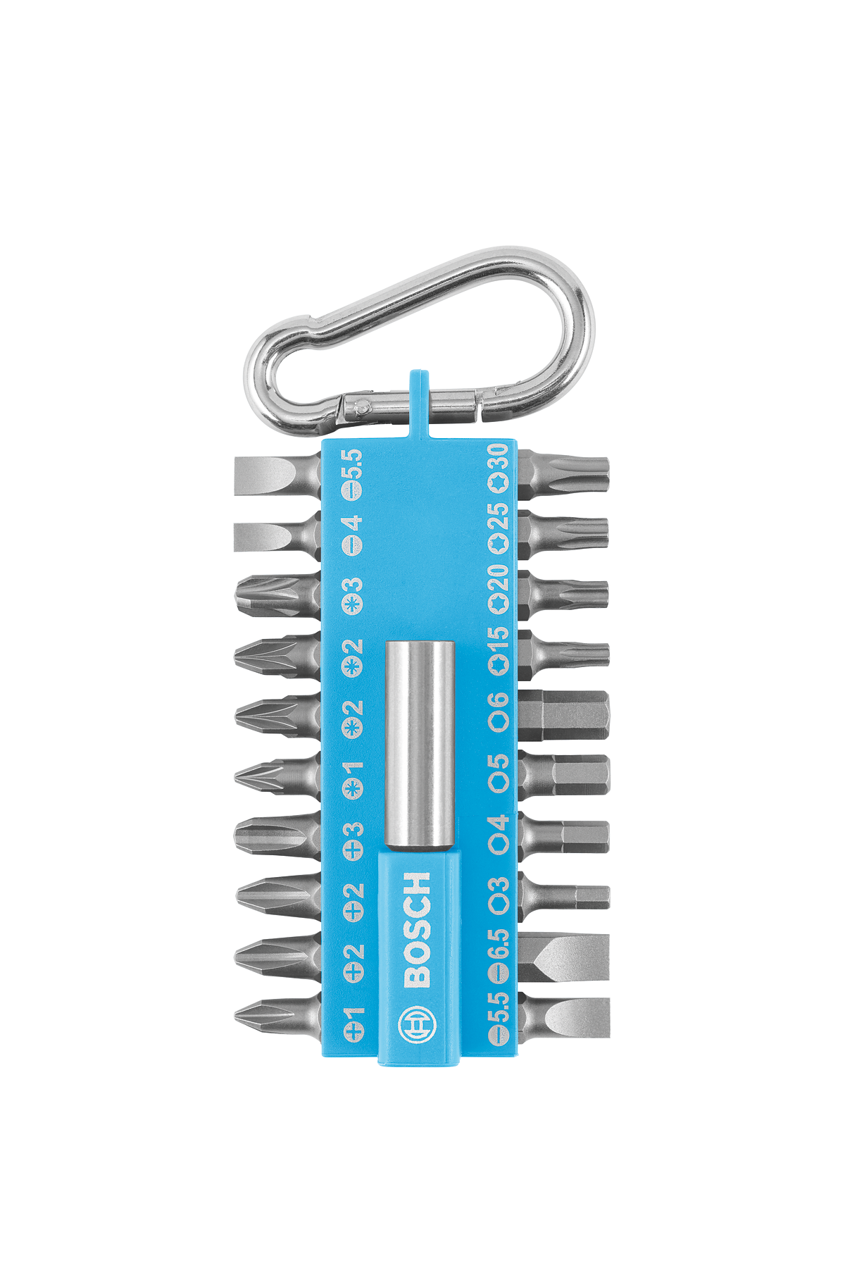 • Set practic cu 20 de capete de șurubelniță normale și un suport universal pentru capete magnetic Datorită carabinei robuste, care se poate prinde cu ușurință de pantaloni sau genți, aveți întotdeauna la îndemână capetele importante, în timp ce lucrați.