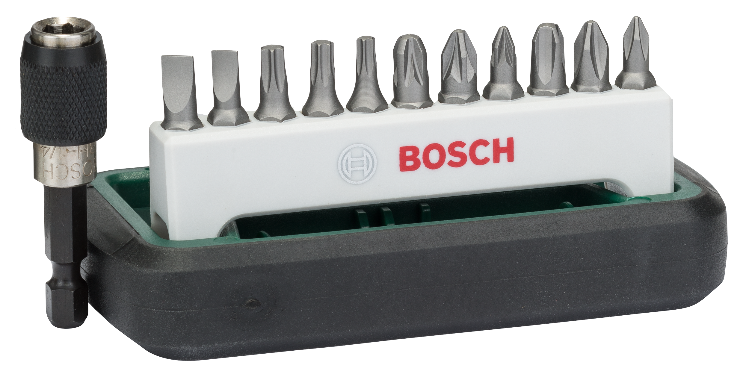 • Cu suport universal Quick-Change și 11 capete de inserție pentru șuruburi Philipps, Pozidriv®, Torx® și șuruburi cu cap crestat